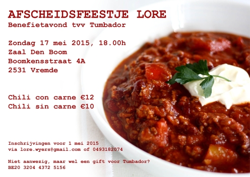 Ik kijk er heel erg naar uit om binnenkort te vertrekken en om sterke ervaringen op te doen tijdens het komende jaar. Je hoort nog van mij...” Lore organiseert nog een benefiet voor haar vertrek op zaterdag 17 mei. Alle info vind je op www.tumbador.be. Inschrijven kan nog tot 1 mei!